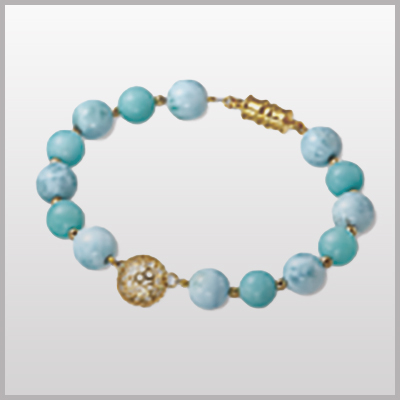 天然石のラリマーとアマゾナイトを配した、遺石ブレスレットです。